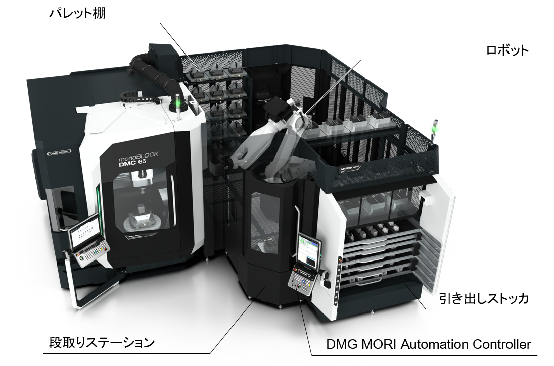 DMG MORI CO., LTD. (hereinafter referred to as “DMG MORI”) has developed its next-generation automation system “MATRIS WPH” for flexible workpiece and pallet handling to support your production.